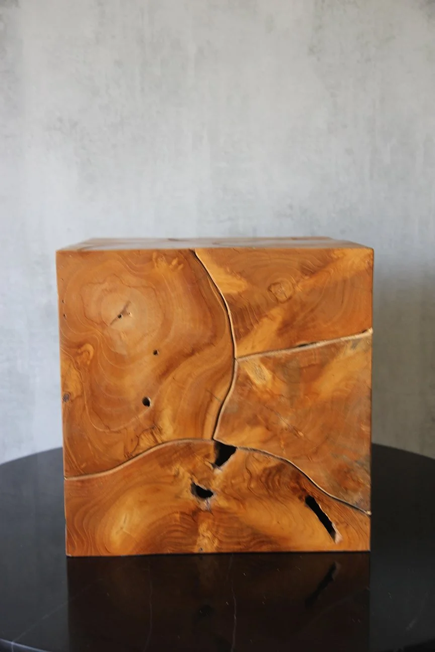 Introducing an accent table that embodies rugged charm and rustic elegance, this piece is expertly crafted to showcase the intricate natural lines and textures of rough-hewn wood. The square sides feature distinctive organic gaps, adding a unique character to the design. Made from warm teak root, the table not only exudes beauty but also durability, making it an exceptional addition to any country home, where it will seamlessly blend into the cozy, inviting surroundings.